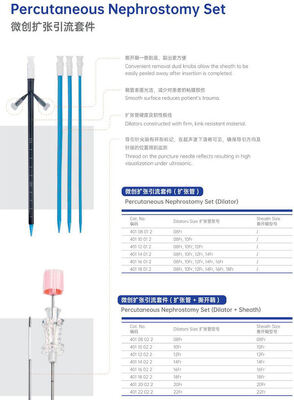 व्यापक किट: सेट में एक सफल नेफ्रोस्टोमी प्रक्रिया के लिए सभी आवश्यक उपकरण शामिल हैं, जिसमें गाइडवायर, डाइलेटर, कैथेटर और जल निकासी ट्यूब शामिल हैं।