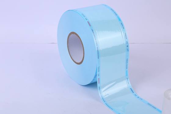 The edges of the reel feature Dual Process Indicators for STEAM and EO gas sterilization, providing a clear visual confirmation of the sterilization status through color contrast.